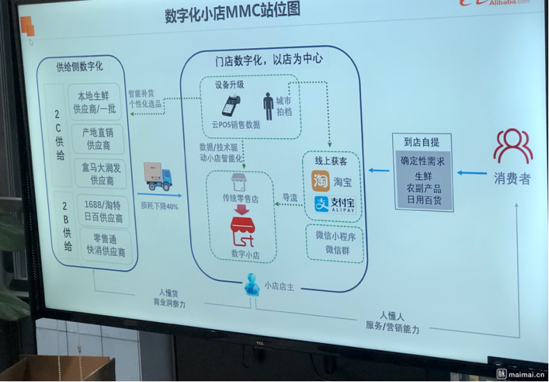 据此前流传出的疑似阿里巴巴MMC模式介绍ppt可见,它的基本玩法是:升级数字小店→获取消费需求→小店与源头工厂和农场直连→定制化生产供给消费者,实现以销优产,最终跑通C2B2M模式(以电商平台为核心,以消费者需求汇集为导向)。